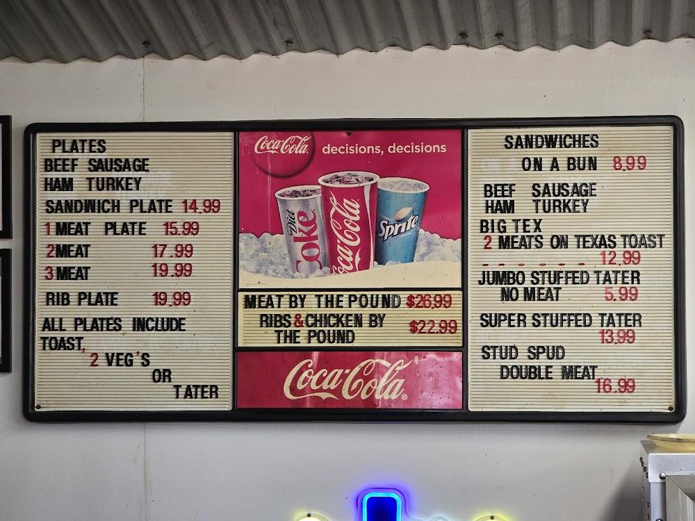 The menu at Texas BBQ Corral shines with classic barbecue offerings. Highlights include brisket, ribs, and homemade sausage, all smoked to perfection. Specialty items like brisket tacos add a modern twist to traditional fare. Sides such as BBQ beans and salad complement the main dishes well. Smaller portions are available, which are perfect for sharing. Desserts like chocolate cake and pecan pie round out a satisfying meal. Expect prices that keep dining accessible while delivering quality flavor. Overall, it's a barbecue lover's dream, offering something for everyone.